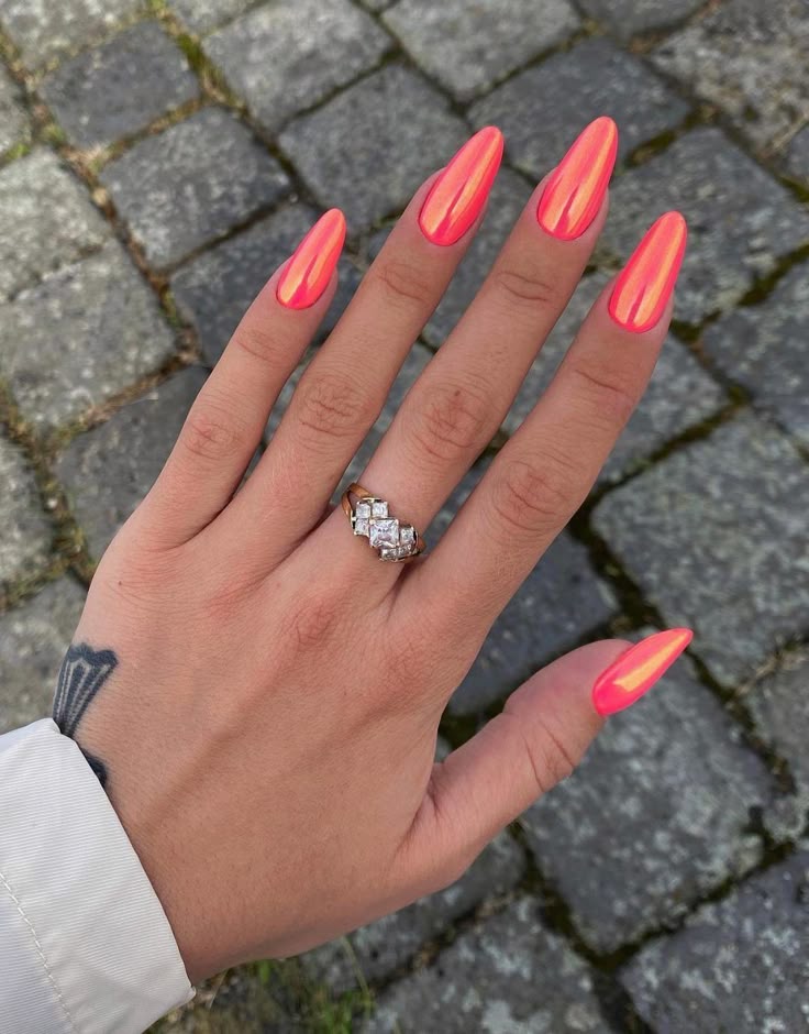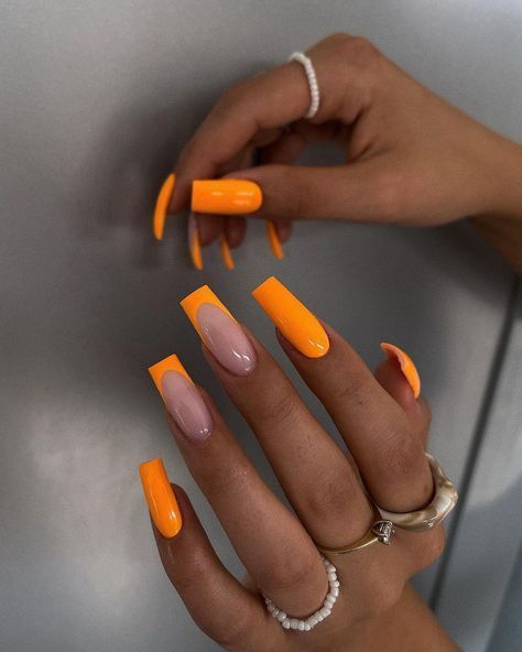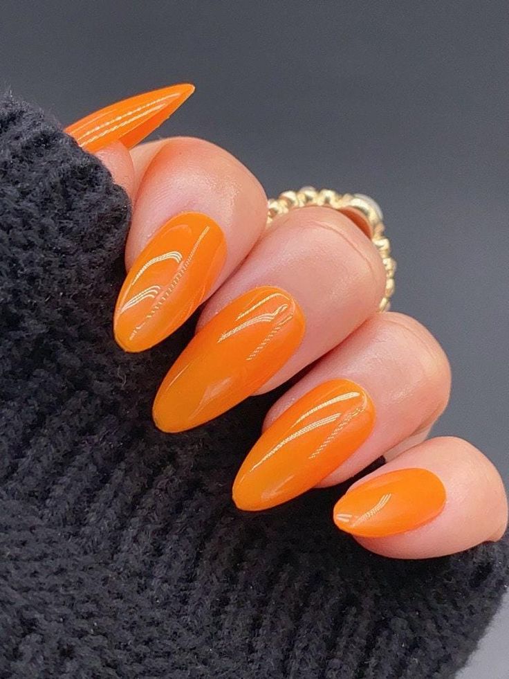 Bright, citrus-inspired orange that practically glows. This vibrant shade captures the energy of summer and pairs beautifully with gold foil or subtle glitter accents.