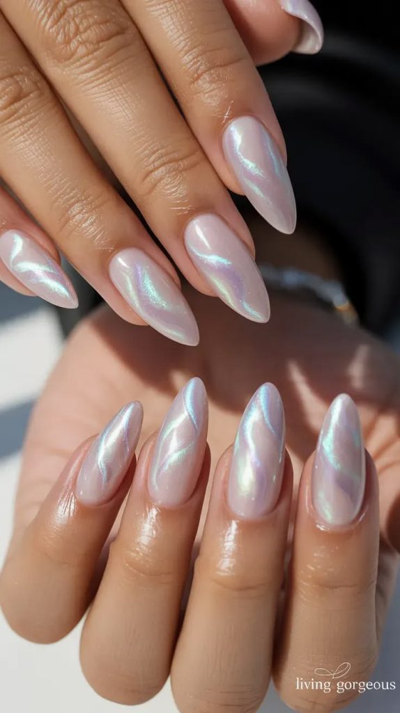 The viral glazed donut trend meets jelly nails. A jelly base is topped with a pearl or chrome overlay, creating a translucent, glowing finish that lives up to its delicious name.