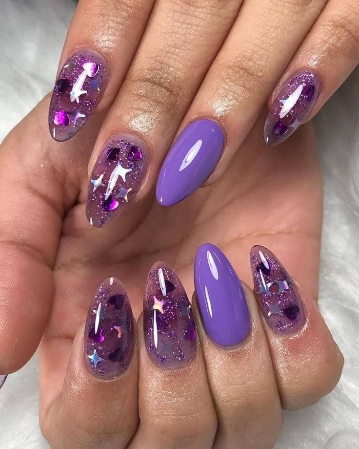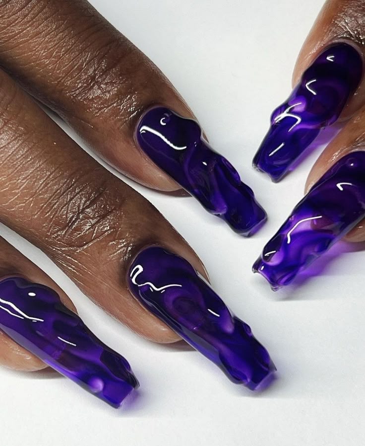 From delicate lavender to deep grape, purple jelly nails offer a range of moods. Lighter lavenders feel soft and romantic; deeper purples bring drama and richness.