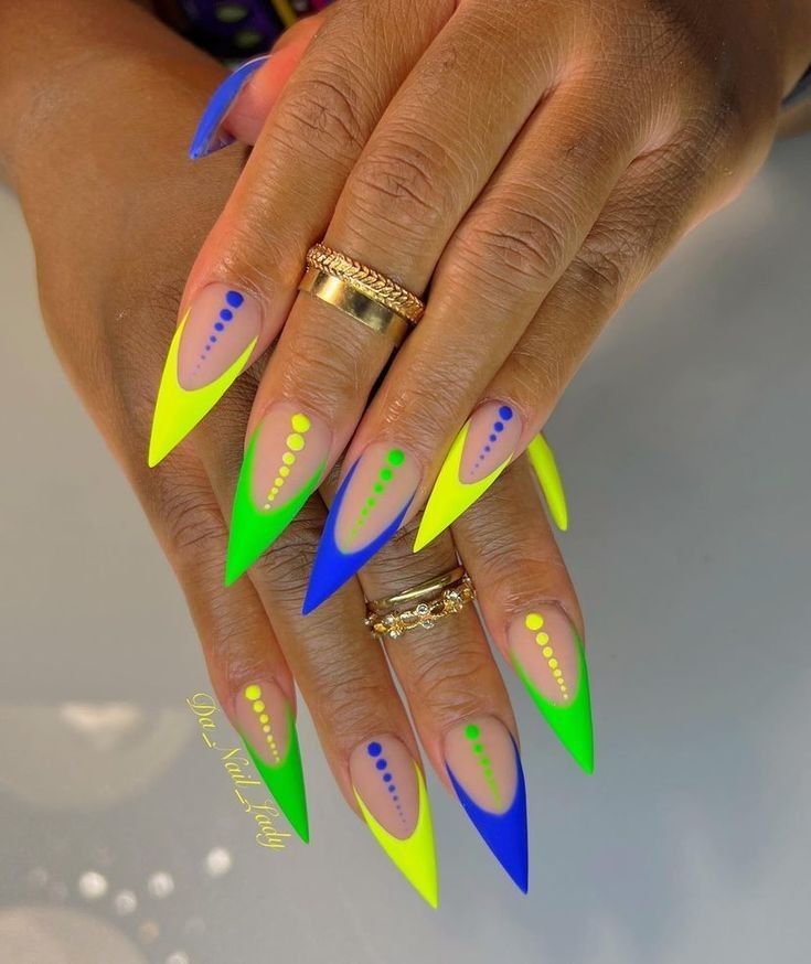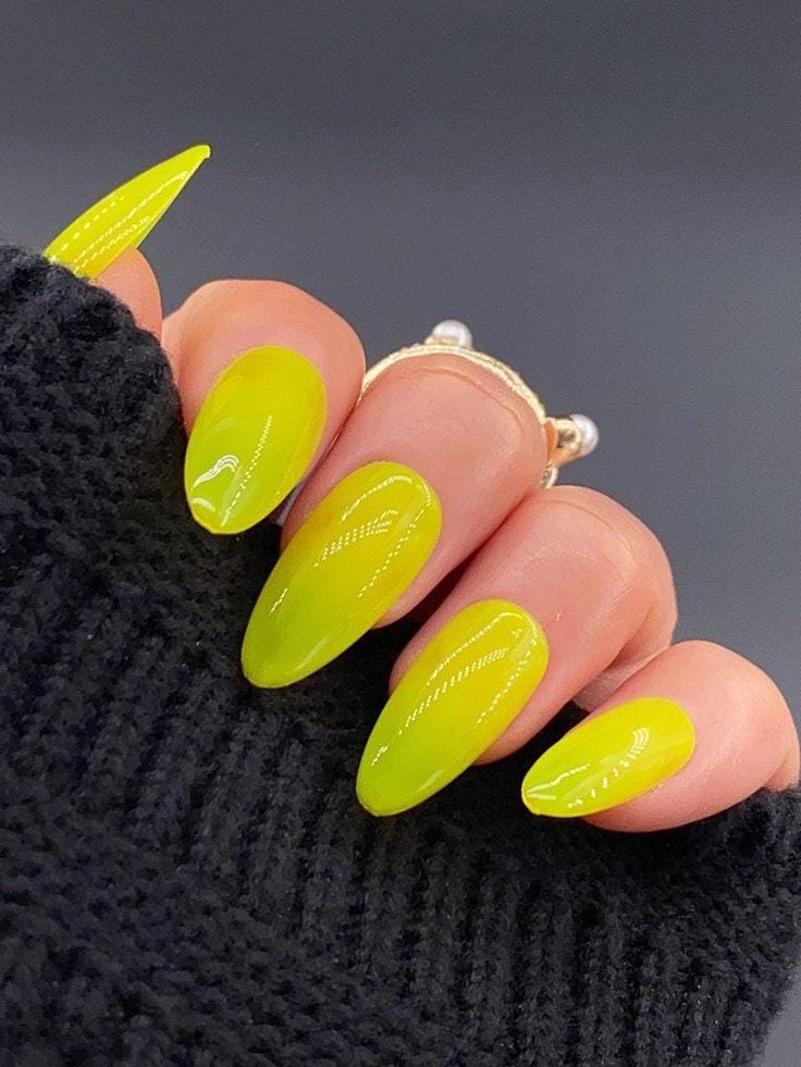 Dramatic stiletto shape with bold jelly colors for an edgy statement. The sharp shape contrasts beautifully with the soft translucence of the polish, creating a look that is both fierce and feminine.