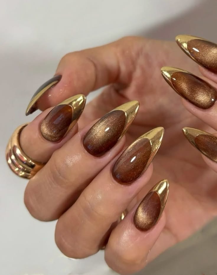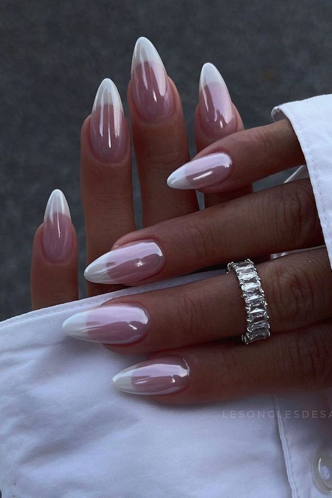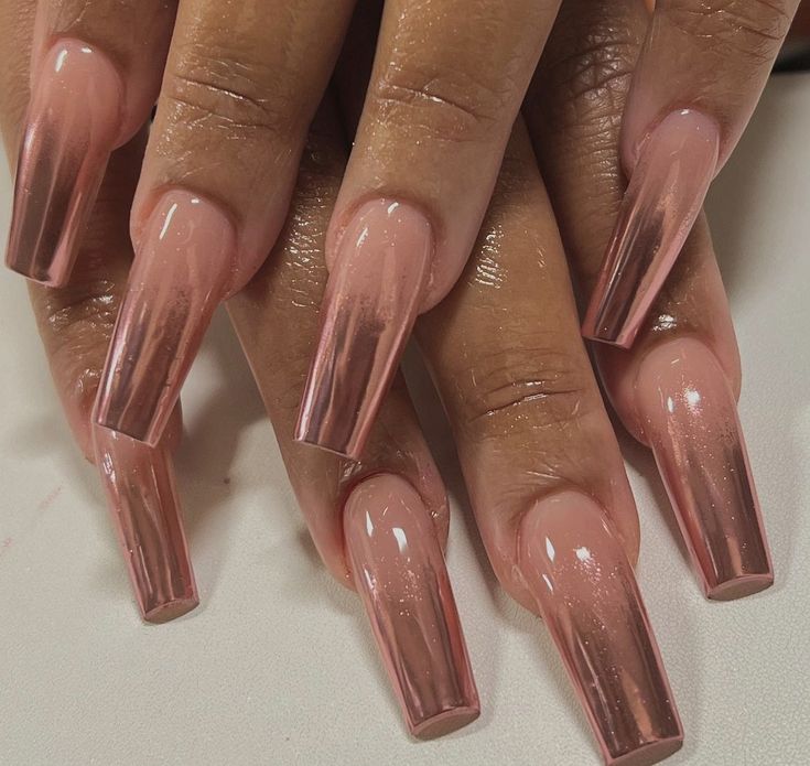 Gradient fade from chrome to sheer or between metallic shades.