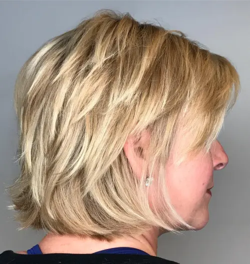 Why it works: This is the foundational shag. It works on almost every hair type and face shape. The layers add volume at the crown, which lifts the face and softens the appearance of jowls and neck lines. The textured ends prevent the cut from looking too severe or “helmet-like.”