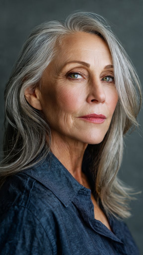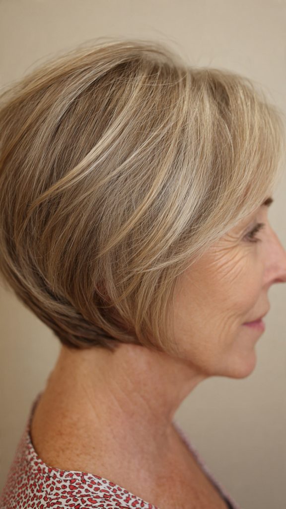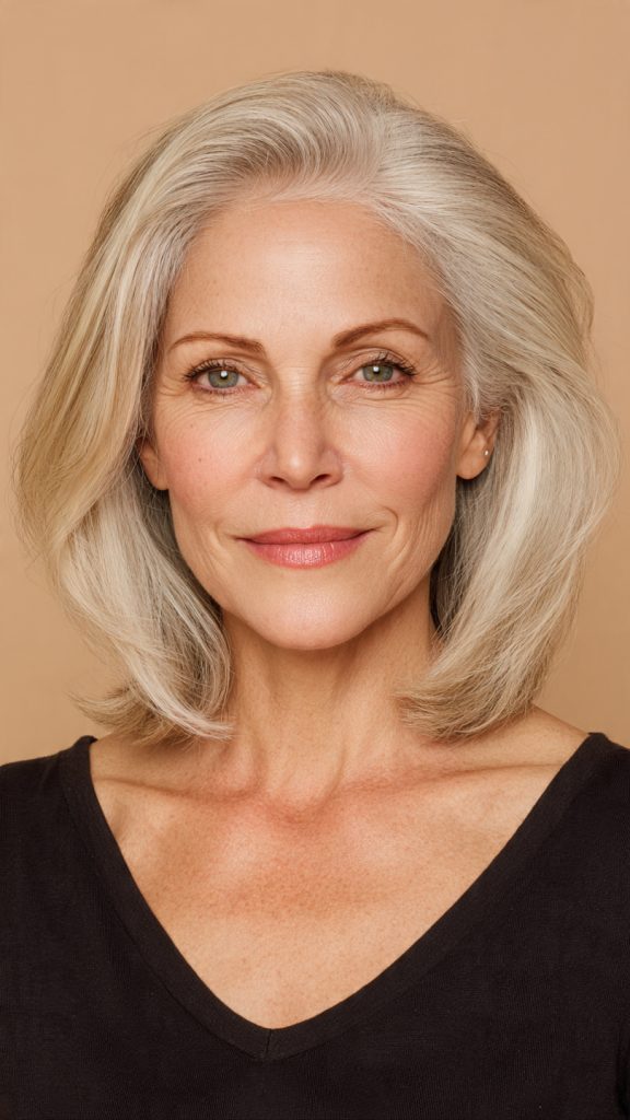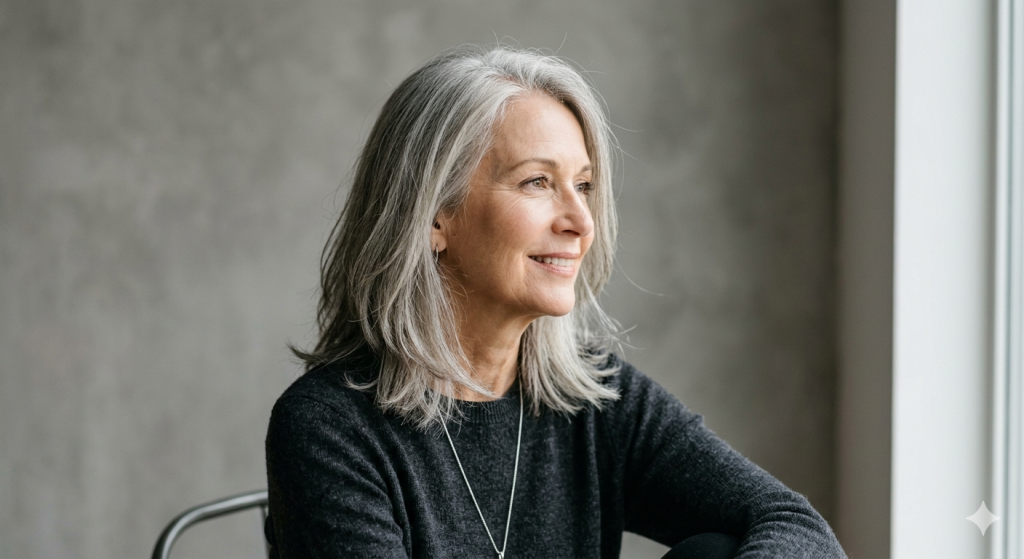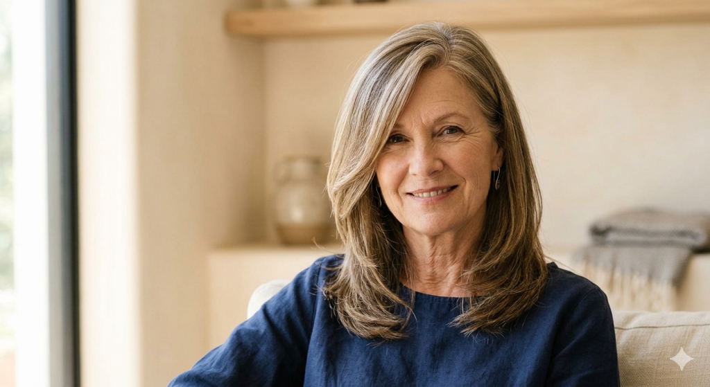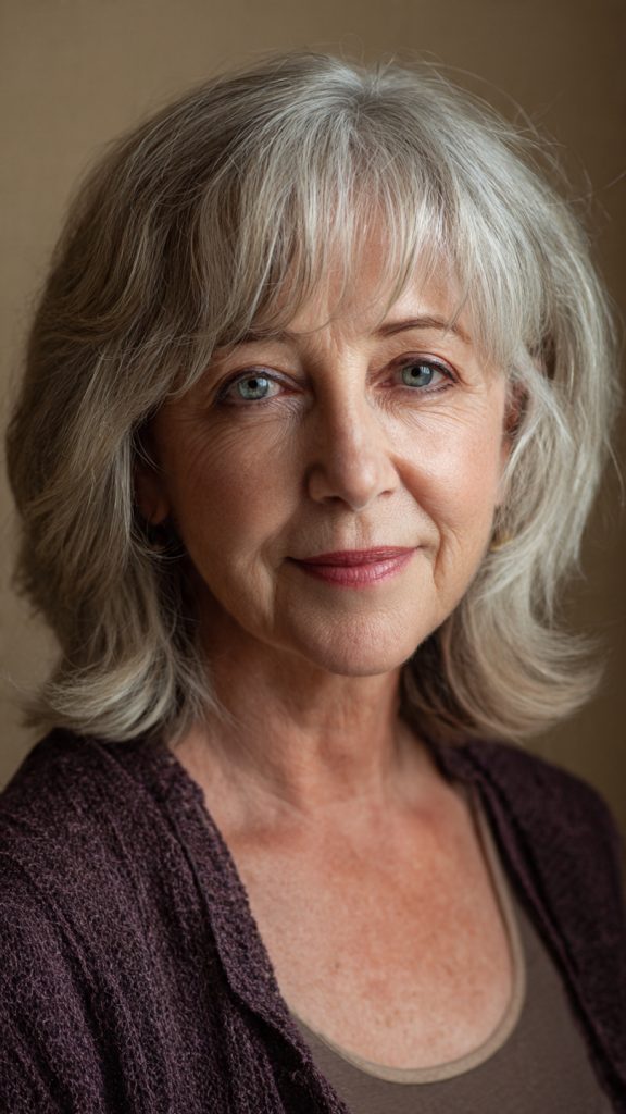That technique produces soft, wispy tips that separate slightly and catch light. The overall effect is modern, relaxed, and age-appropriate without reading as “trying too hard.” The texture also creates the illusion of density — a significant benefit for women with fine or thinning hair.